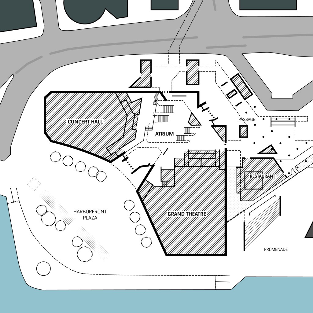 This article proposed a different way to read cultural architecture and its public space, with an approach that emphasis on human-scale experience over monumental image, and to further analysis how spatial organization reflects social relations. The brief account on HKCC began to unpack the complexity of its spatial (and therefore social) construct, serving as the baseline for further investigation on the formation of public space at the Hong Kong Cultural Centre.