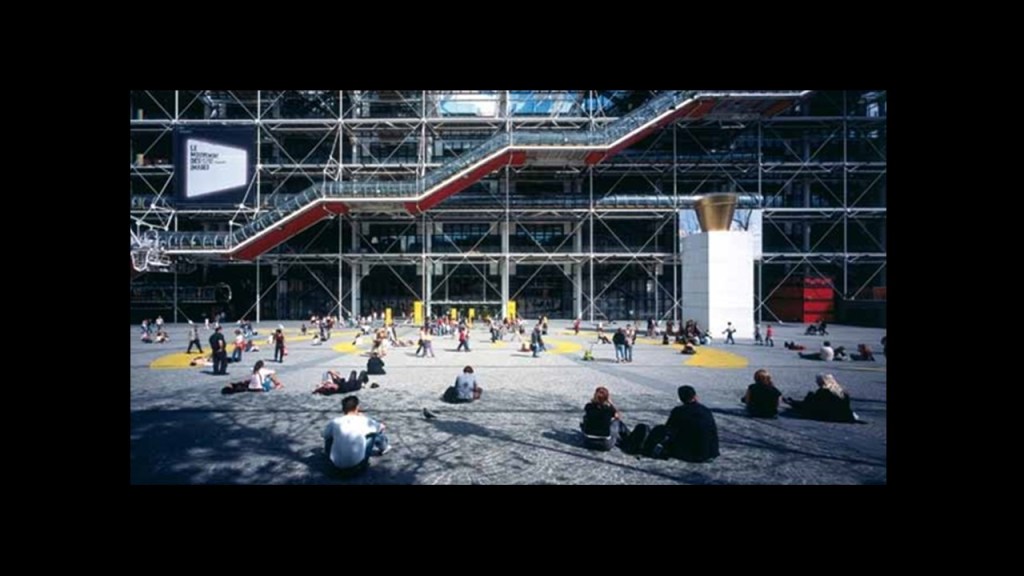 The exterior plaza space of a cultural landmark is positioned between the prescribed cultural function and generic urban public space. It can be used freely as everyday space, but sometimes also used for formal or informal cultural programs. In this case of the Pompidou, the “piazza” of the building is famous of street performance and artistic events. Public accessibility (and therefore experience) is extended into the interior space of the building, as a conceptually continuous public space from outside to inside. (although nowadays accessibility became easily sacrificed for the sake of security or health…)