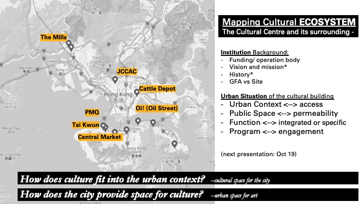 This course investigates the role of cultural architecture in urban context, asking the question of how cultural form and practice is situated in the city and affect its development. It will be a dialogue about the two aspects – (1) Cultural Forms (aka architecture), through international and local case study of cultural architecture, seeing them not as an iconic/isolated object but actively engaging with the urban environment; and (2) Cultural Practice, looking at creative works and cultural practice in response to the city, and how the act of culture affects urban space and urban life. The course will be structured around themed lectures, intercept with workshop exercise that builds up to a mapping/survey project to investigate cases of local cultural institutions and their relation to urban form and social life.