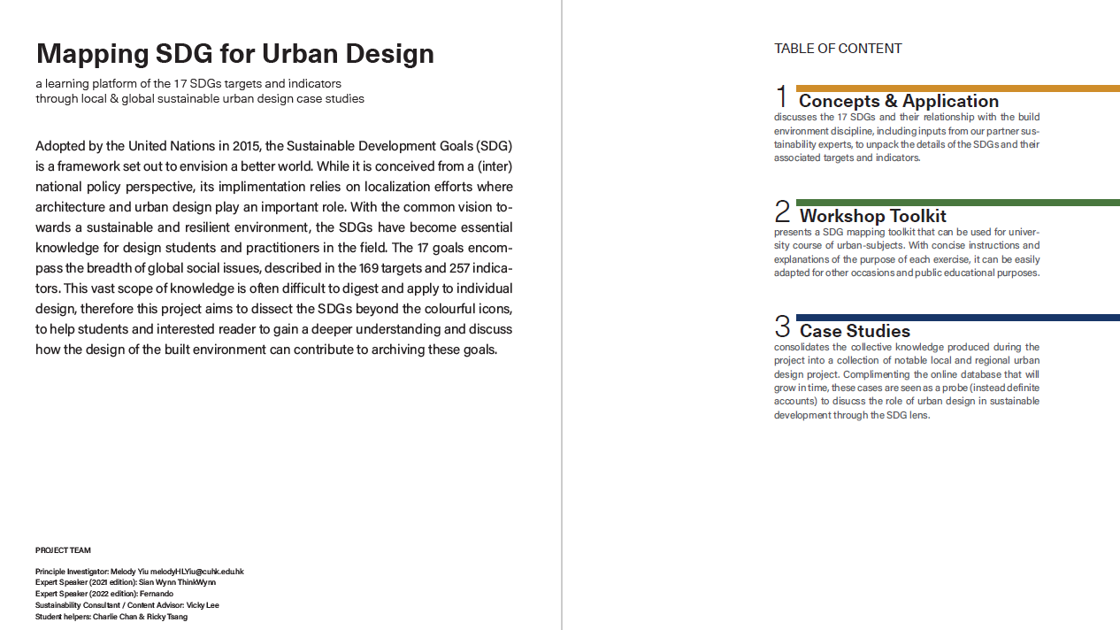 - 2023: publish “Mapping SDG for Urban Design” Learning resource & workshop toolkit
