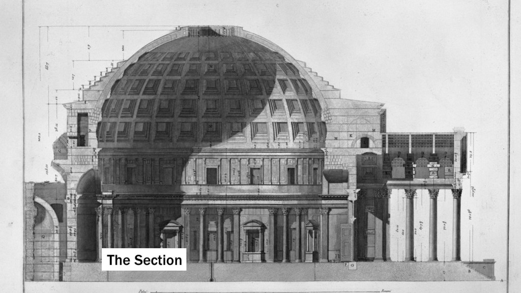 The two types of architectural elements that make space are the plane that confines space and the opening that frames space. These elements together construct the room, which is the fundamental unit in the conception of space. As Louis Kahn once said, “Architecture comes from the making of a room.” One note on expanding our spatial imagination is how “space” is not seen as an object but “consists of acts, such as inhabiting, occupying, entering, departing, confront, etc., rather than visual elements” (Pallasmaa). Pay attention to the action in space and how it interacts with the elements, such as “entering” through a door, “confronting” a step, etc.