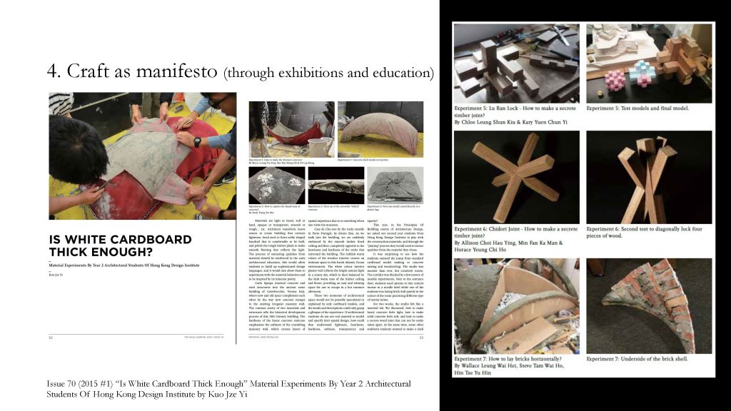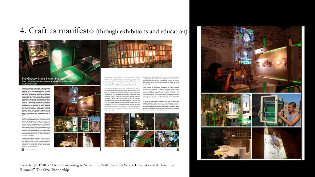 - Craft as a manifesto (through exhibitions and education)
