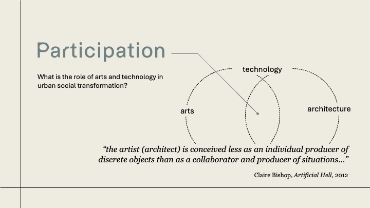 Keywords: Participatory Practices, Socially Engaged Art, Sound Art, Urban Space, Technology-enabled participation, Ecologies
